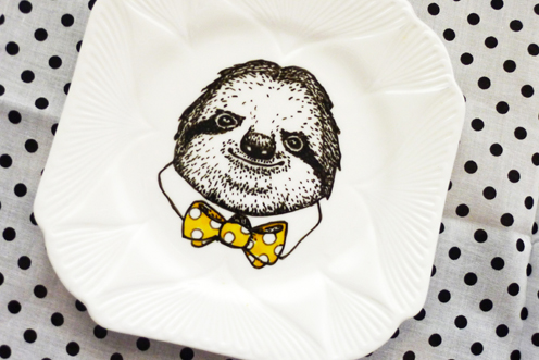 ReplyThe sloth plate is adorable! I love his little tie. :)